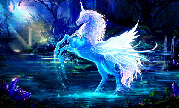 เขาเงินงอกออกมาจากหน้าผากของมันและกีบเท้าของมันกลายเป็นสีทองสดใส ทุกๆ ย่างก้าวจะมีรัศมีวงเล็กๆ แผ่ออก